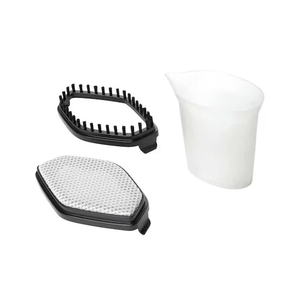 Included Accessories: Fabric brush, lint remover, and measuring cup.